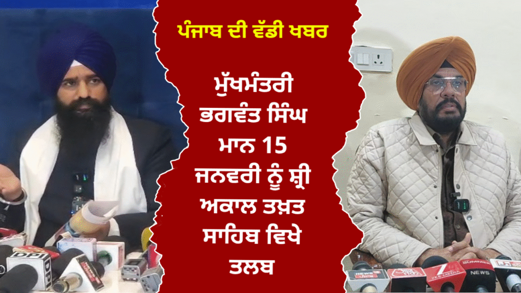 ਪਿਛਲੇ ਸਮੇਂ ਚੱਲ ਰਹੇ ਇੱਕ ਸੰਜੀਦਾ ਪੰਥਕ ਮਾਮਲੇ ਸਬੰਧੀ ਗੱਲ ਕਰਦਿਆਂ ਸਿੱਖ ਵਿਰੋਧੀ ਮਾਨਸਿਕਤਾ ਦਾ ਪ੍ਰਗਟਾਵਾ ਕਰਦਿਆਂ ਜਾਣਬੁੱਝ ਕੇ ਸ੍ਰੀ ਅਕਾਲ ਤਖ਼ਤ ਸਾਹਿਬ ਦੀ ਸਿੱਖ ਰਹਿਤ ਮਰਯਾਦਾ ਤੇ ਸਰਬਉੱਚਤਾ ਅਤੇ ਸਿੱਖ ਗੁਰੂ ਸਾਹਿਬਾਨ ਵੱਲੋਂ ਬਖ਼ਸ਼ੇ ਦਸਵੰਧ ਦੇ ਸਿਧਾਂਤ “ਗੁਰੂ ਕੀ ਗੋਲਕ” ਵਿਰੁੱਧ ਵਾਰ-ਵਾਰ ਬਹੁਤ ਹੀ ਇਤਰਾਜ਼ਯੋਗ ਟਿੱਪਣੀਆਂ ਕਰਕੇ ਸਿੱਖ ਭਾਵਨਾਵਾਂ ਨੂੰ ਗਹਿਰੀ ਸੱਟ ਮਾਰਨ ਦੇ ਮਾਮਲੇ ਵਿੱਚ ਸ੍ਰੀ ਅਕਾਲ ਤਖ਼ਤ ਸਾਹਿਬ ਵੱਲੋਂ ਪੰਜਾਬ ਦੇ ਮੁੱਖ ਮੰਤਰੀ ਸ੍ਰੀ ਭਗਵੰਤ ਮਾਨ ਨੂੰ 15 ਜਨਵਰੀ ਨੂੰ ਸਕੱਤਰੇਤ ਵਿਖੇ ਸੱਦਿਆ ਗਿਆ ਹੈ। ਇਸ ਦੇ ਨਾਲ ਹੀ ਇਹ ਕਾਰਵਾਈ ਬੀਤੇ ਦਿਨੀਂ ਮੁੱਖ ਮੰਤਰੀ ਭਗਵੰਤ ਮਾਨ ਦੀ ਸਾਹਮਣੇ ਆਈਆਂ ਇਤਰਾਜ਼ਯੋਗ ਵੀਡੀਓ ਦੇ ਮਾਮਲੇ ਵਿੱਚ ਵੀ ਕੀਤੀ ਗਈ ਹੈ, ਜਿਸ ਵਿੱਚ ਉਹ ਸਿੱਖ ਗੁਰੂ ਸਾਹਿਬਾਨ ਅਤੇ 20ਵੀਂ ਸਦੀ ਦੇ ਮਹਾਨ ਸਿੱਖ ਤੇ ਕੌਮੀ ਸ਼ਹੀਦ ਸੰਤ ਗਿਆਨੀ ਜਰਨੈਲ ਸਿੰਘ ਖ਼ਾਲਸਾ ਭਿੰਡਰਾਂਵਾਲੇ ਦੀਆਂ ਤਸਵੀਰਾਂ ਨਾਲ ਅਤਿ-ਇਤਰਾਜ਼ਯੋਗ ਗਤੀਵਿਧੀ ਕਰਦੇ ਨਜ਼ਰ ਆ ਰਹੇ ਹਨ।